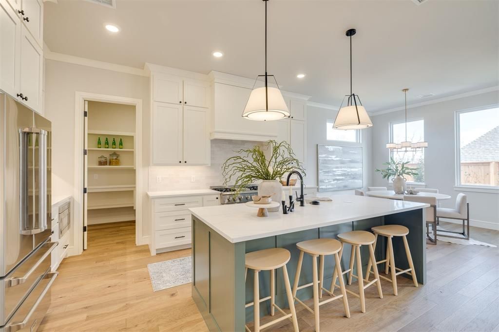 This home in Stone Hill Cottages at Iron Horse Ranch blends modern design, thoughtful details, and low-maintenance living without sacrificing privacy or outdoor space.Warm white oak wood floors, designer lighting, and a zellige-tile fireplace set the tone the moment you enter. Large windows bring in excellent natural light, and a dedicated study off the entry provides the perfect workspace or flex room.The kitchen features a commercial-grade Thor gas range, oversized island, walk-in pantry, and custom cabinetry. The spa-like primary suite includes a wet-room style bath with a frameless glass, curbless shower room and a soaking tub for a true retreat experience. You'll love the direct access to the utility room from the primary closet, adding ease to daily living.Secondary bedrooms are spacious and versatile for guests, hobbies, or quiet relaxation.The private fenced backyard is designed for year-round enjoyment with a covered outdoor living space, fireplace, and a turf putting green-a perfect spot to unwind at the end of the day.Enjoy new construction, timeless finishes, and a community with a pool, clubhouse, yard maintenance, and walkability-minutes from Edmond dining, shopping, and conveniences.